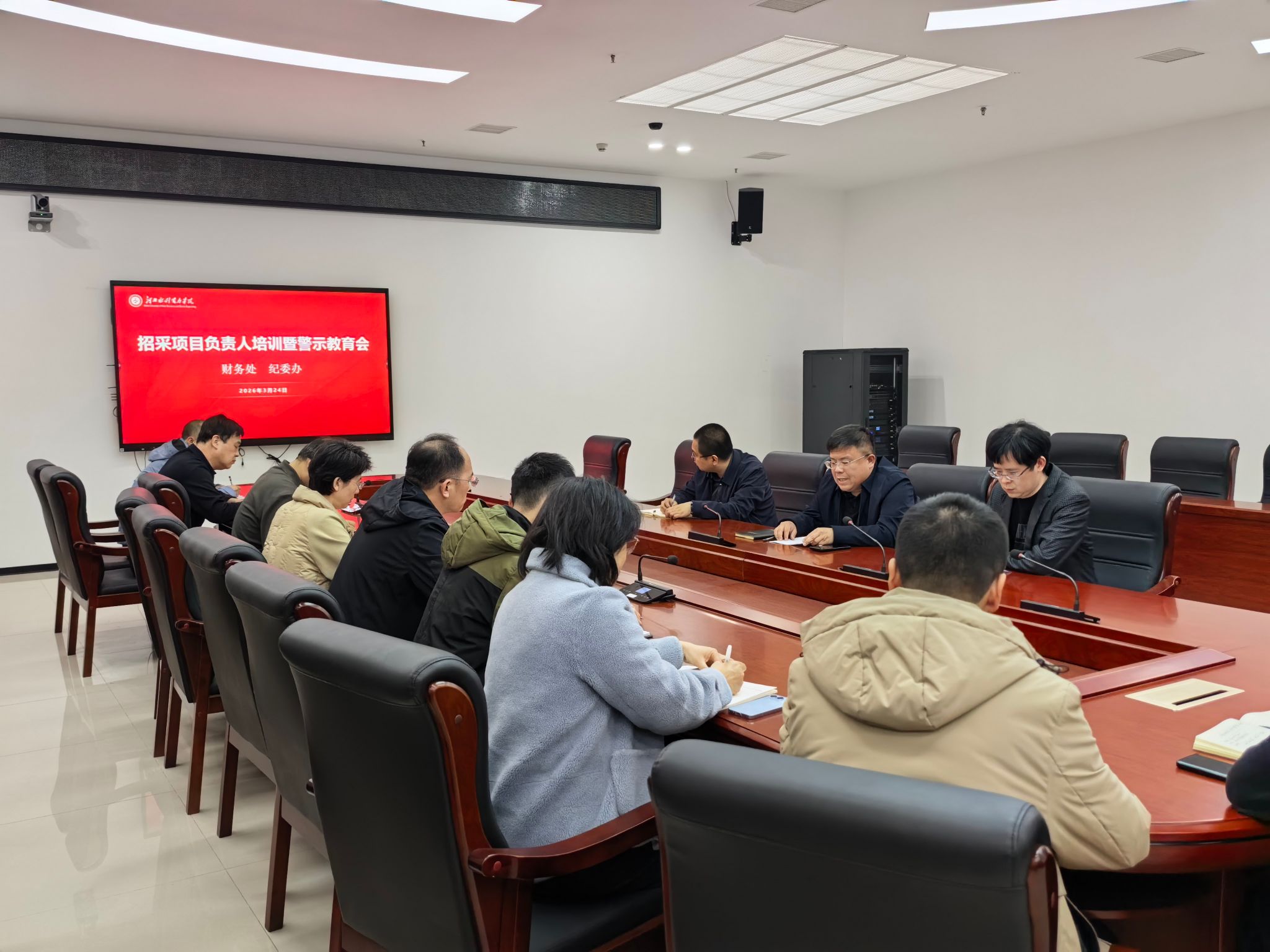 此次培训暨警示教育会,将业务培训与廉政教育有机结合,既提升了项目负责人的专业能力,又强化了廉洁自律意识,为学校2026年招标采购工作规范有序开展奠定了坚实基础,加强完善了内控管理,全力营造风清气正的采购工作环境。